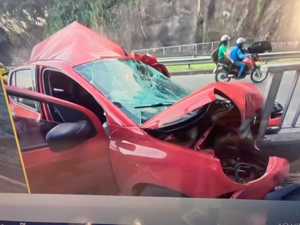 Acidente envolvendo carro e ônibus em túnel Pirajá-Lobato