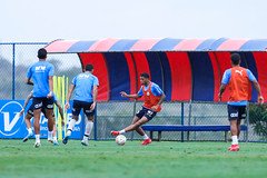 Os atletas realizaram atividade física no gramado e tiveram novidades do departamento médico, que liberou o lateral-direito Gilberto e meia Michel Araújo, recuperados de lesão e participaram normalmente do treino.