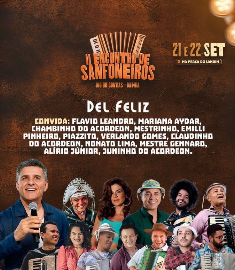 Comemorando 25 anos de carreira, Del Feliz será o anfitrião do 2° Encontro de Sanfoneiros de Rio de Contas, que terá uma grande grade de convidados!