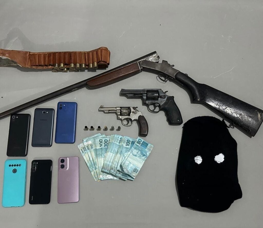 Após o confronto, os militares encontraram um suspeito ao solo, ferido, e nas proximidades o segundo criminoso foi alcançado. Com eles foram encontrados um revólver cal. 38 com numeração raspada com três munições intactas e três deflagradas, um revólver calibre 32 com numeração raspada e uma espingarda calibre 16 com 11 munições, sendo seis deflagradas e cinco intactas, seis aparelhos celulares e R$4378,00.