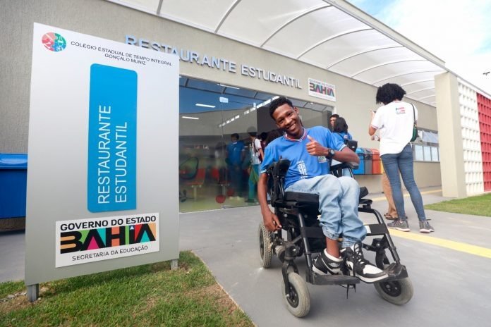 Adicionada a toda essa infraestrutura, a acessibilidade é destaque. O estudante do 1º ano do Ensino Médio, Vinicius Martins, 18 anos, foi diagnosticado com microcefalia e má-formação dos membros inferiores, aos nove meses. Com o auxílio da cadeira de rodas, ele consegue percorrer todos os espaços da nova escola de forma rápida e confortável.