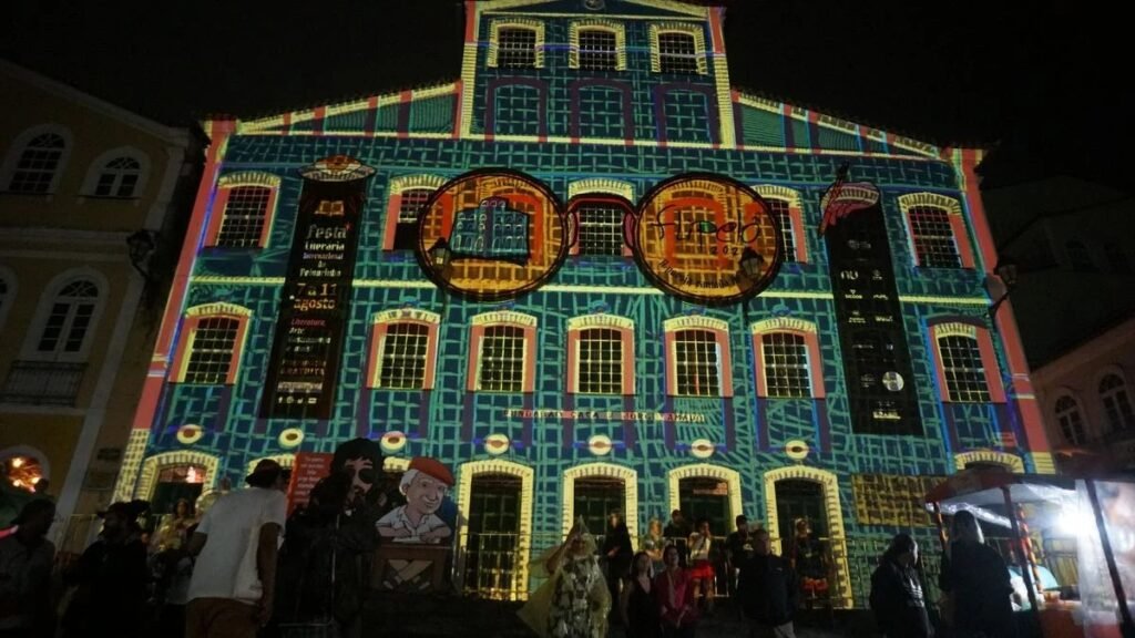 FLIPELÔ, Festa literária 2024 teve início nesta quarta-feira (7) em Salvador. A abertura oficial contou com shows e vídeo mapping projetado pelo VJ Gabiru em homenagem ao cantor Raul Seixas.