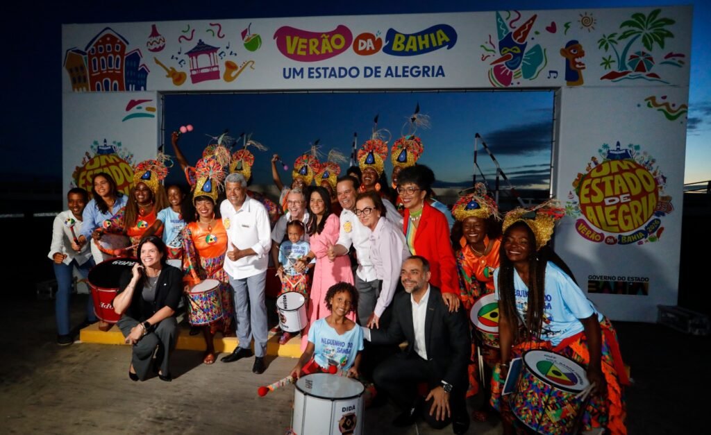 Nesta quarta-feira (17), o governador Jerônimo Rodrigues lançou o Projeto Verão 2025/2026, que tem como tema “Verão da Bahia. Um Estado de Alegria!”. Mais do que um calendário de festas, o plano reúne ações integradas do Governo do Estado nas áreas de segurança, cultura, turismo, saúde, direitos humanos e infraestrutura, com o objetivo de garantir um verão seguro e acolhedor para baianos e turistas. Na ocasião, o governador assinou a lei que altera a denominação da Praça das Artes, Cultura e Memória, situada no Pelourinho, para Praça das Artes Mestre Neguinho do Samba.