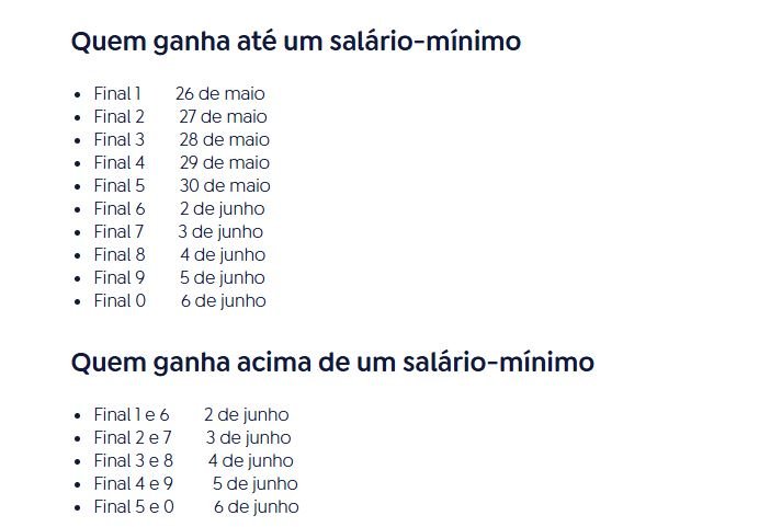 A data exata da devolução depende do valor do benefício (igual ou maior que um salário-mínimo) e do último algarismo do número de Benefício (NB) – sem considerar o dígito verificador, que aparece depois do traço. De acordo com o calendário regular de pagamentos, a devolução será feita nas seguintes datas:
