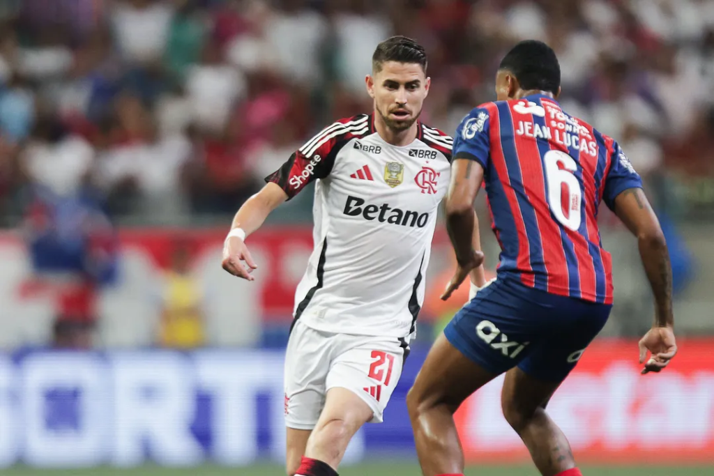 O meia-atacante Jorginho deixou o gramado da Arena Fonte Nova bastante irritado após a derrota do Flamengo por 1 a 0 para o Bahia, neste domingo (5), pela 27ª rodada do Campeonato Brasileiro. O jogador não poupou críticas à arbitragem e, principalmente, às condições do campo em Salvador, que já haviam sido alvo de reclamações de outros clubes. “Sinceramente, o gramado estava em péssimas condições. Bem difícil de jogar futebol. Ah, vão falar que estava para os dois lados. Sim, estava, mas acaba prejudicando o espetáculo e o futebol. Era pura terra, a bola não parava, ficava quicando. Para os dois lados e atrapalha o espetáculo para a torcida que quer ver um bom futebol”, afirmou o camisa 21, visivelmente insatisfeito.