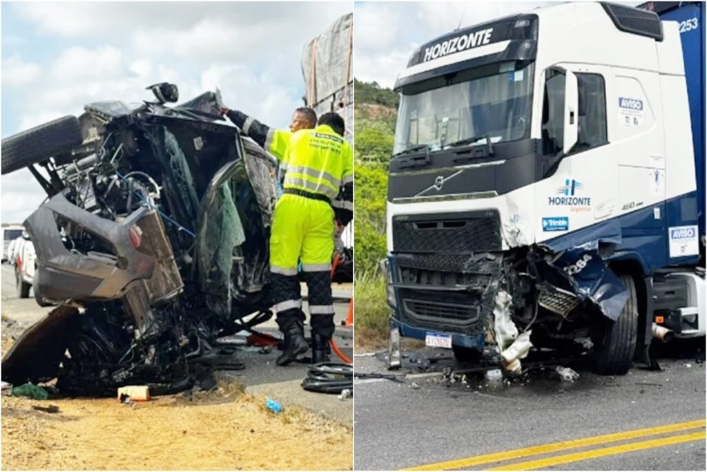 O acidente, que se deu por volta das 8h, envolvendo um EcoSport e carreta Scania, conduzido por um homem identificado apenas como sr. Josias.