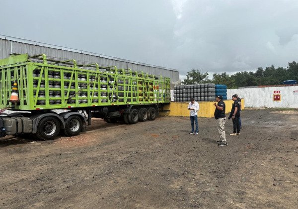 Durante a fiscalização, os agentes localizaram um depósito clandestino na Avenida Rio Bandeira, onde foram apreendidos mais de mil botijões de aço utilizados para armazenamento de GLP. Um caminhão empregado no transporte do material também foi identificado e passou por vistoria técnica.