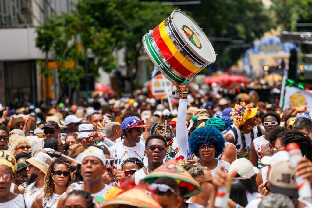 Durante o trajeto, o público entoou trechos de músicas como “Ê fulalá, Wodaabe Mbororo… Ô deixa chover, ô deixa molhar… Só saio dessa zorra quando o Olodum passar, cadê?” e “Vai e volta, gaivota, voa livre no ar… e no início das suas jornadas, sentir o cheiro de peixe no mar”, repetidos de forma contínua ao longo da apresentação.