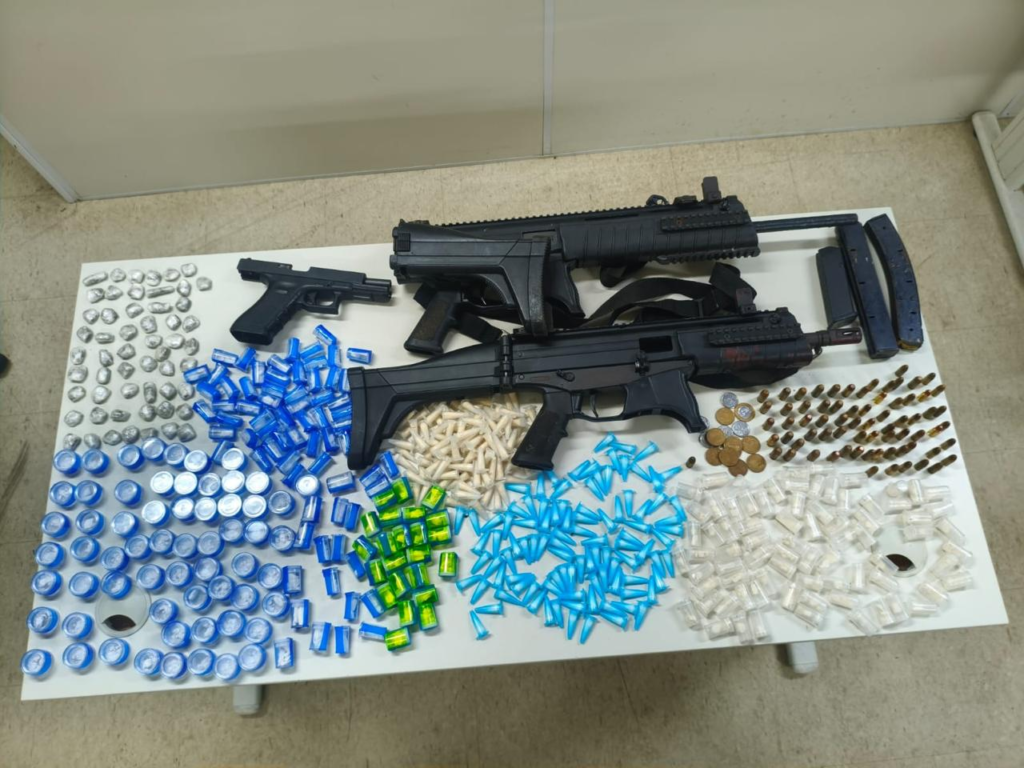 Na ocorrência, foram apreendidas duas submetralhadoras, uma pistola 9mm, 71 munições de diversos calibres, além de 436 porções de cocaína, 52 trouxas de maconha e dinheiro em espécie. Todo o material recolhido foi encaminhado à autoridade competente para adoção das medidas legais.