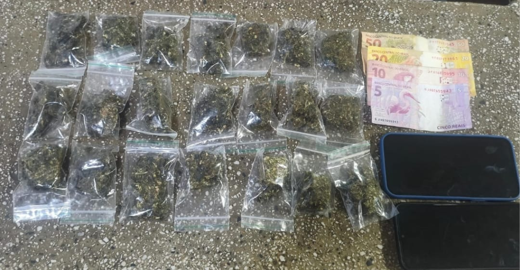 Policiais militares da Cipe Mata Atlântica detiveram um homem na noite de terça-feira (3) após flagrá-lo com entorpecentes durante uma abordagem em Teixeira de Freitas. A ação ocorreu quando a guarnição interceptou um carro e, durante a vistoria, encontrou 266g de maconha fracionada e embalada para distribuição, além de dinheiro em espécie e dois aparelhos celulares dentro do veículo.