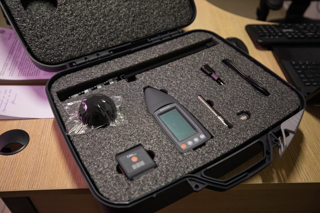 O sonômetro (SLM – Sound Level Meter) é um instrumento portátil que mede os níveis de som de forma padronizada. Ele é projetado para responder ao som de maneira semelhante ao ouvido humano, fornecendo medições objetivas e reproduzíveis dos níveis de pressão sonora. Isso permite avaliar a intensidade do som e identificar possíveis infrações relacionadas ao excesso de ruído, contribuindo para a preservação do bem-estar da população e do meio ambiente.