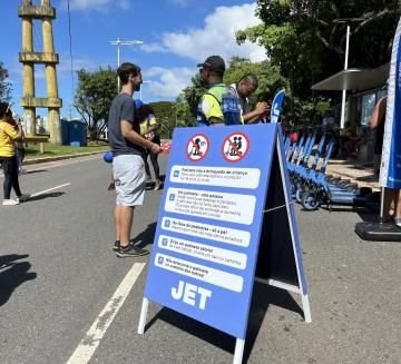 Durante a blitz, agentes da Semob realizaram abordagens educativas com foco na condução segura dos patinetes. Também foram distribuídos materiais informativos com orientações claras sobre o uso correto e seguro do equipamento.