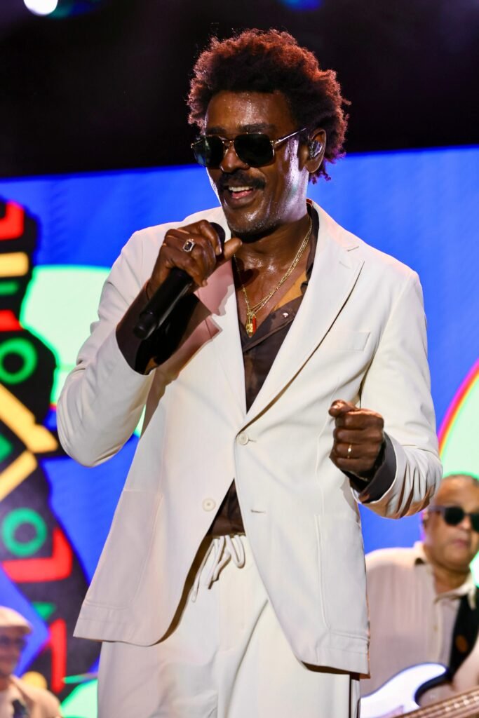 A entrada de Seu Jorge no palco foi cercada de expectativa, e desde o primeiro minuto o artista mostrou que a espera valeu a pena. De terno branco e óculos escuros, ele surgiu dançando, regendo a banda e conduzindo as coreografias que foram seguidas com entusiasmo pela plateia. Logo na abertura com Sábado à Noite, bastou cantar o verso “tira a mão do bolso, negão” para que toda a Arena se movesse em sintonia, transformando o espaço em um verdadeiro baile coletivo.