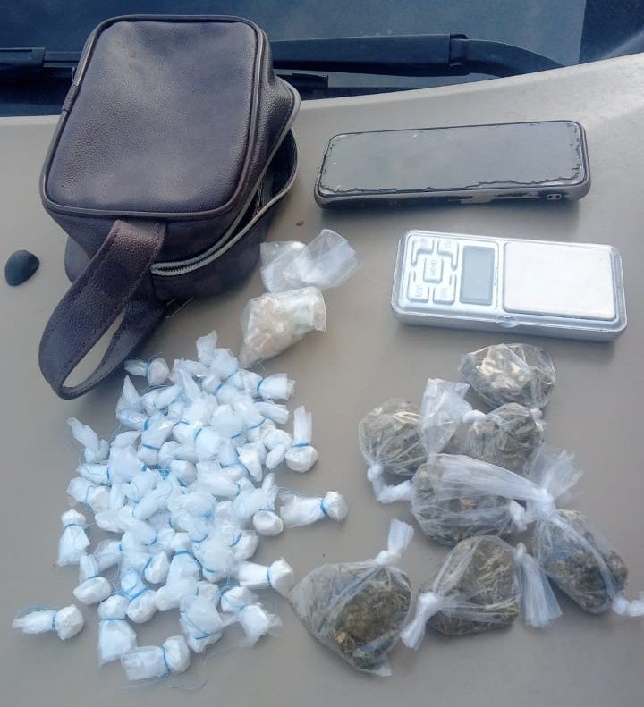 Com ele, foram apreendidas 56 embalagens contendo cocaína, 15 pedras de crack e sete porções de maconha.