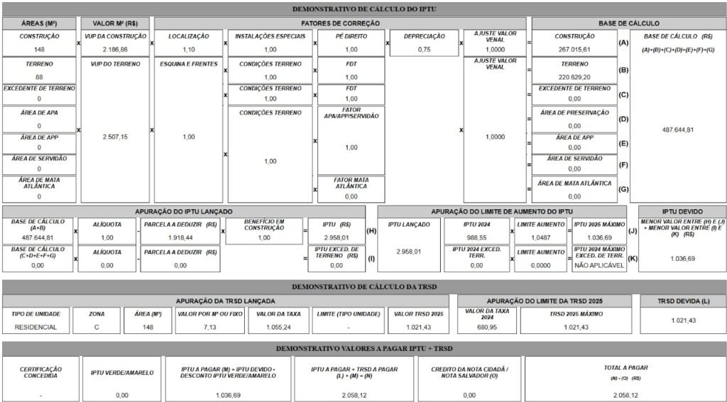 Confiram no link abaixo os valores do seu IPTU e da sua TRSD 2025 de Salvador, contidos no sítio eletrônico da Secretaria Municipal da Fazenda da Prefeitura de Salvador, informando a sua inscrição imobiliária e o exercício de 2025.