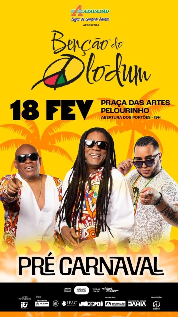 O Olodum promove o seu última Bênção do Olodum 18 de fevereiro, na Praça das Artes, no Pelourinho (Em frente à Casa do Olodum). A celebração integra as comemorações dos 45 anos de criação do Samba-reggae, homenageando também os 40 anos do axé. Sempre com participação especial.