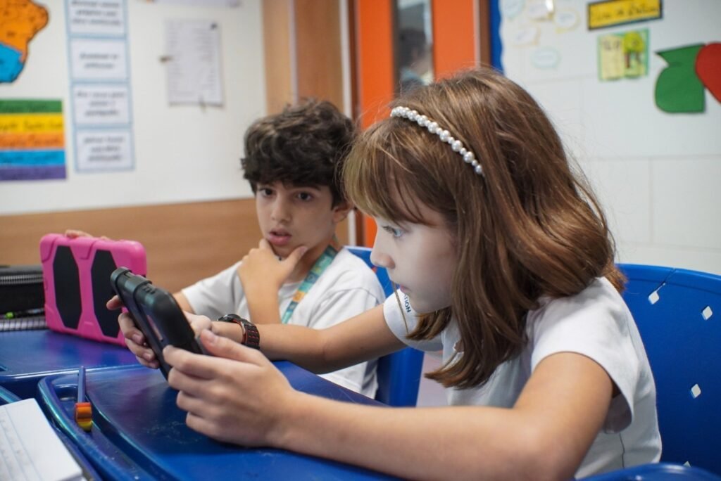 “Em vez de simplesmente proibir o uso de celulares, a escola substitui esses dispositivos por ferramentas digitais específicas para cada aluno, como notebooks e tablets, criando assim um ambiente propício para uma interação mais produtiva com a tecnologia”, explica a pedagoga