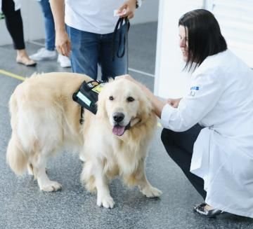 Armando Gomes, guia de Mick e responsável pelo projeto Dogville, que inclui um centro de treinamento e hotel para cães, destacou os benefícios significativos que o trabalho com o cão-terapeuta proporciona aos pacientes e seus acompanhantes.